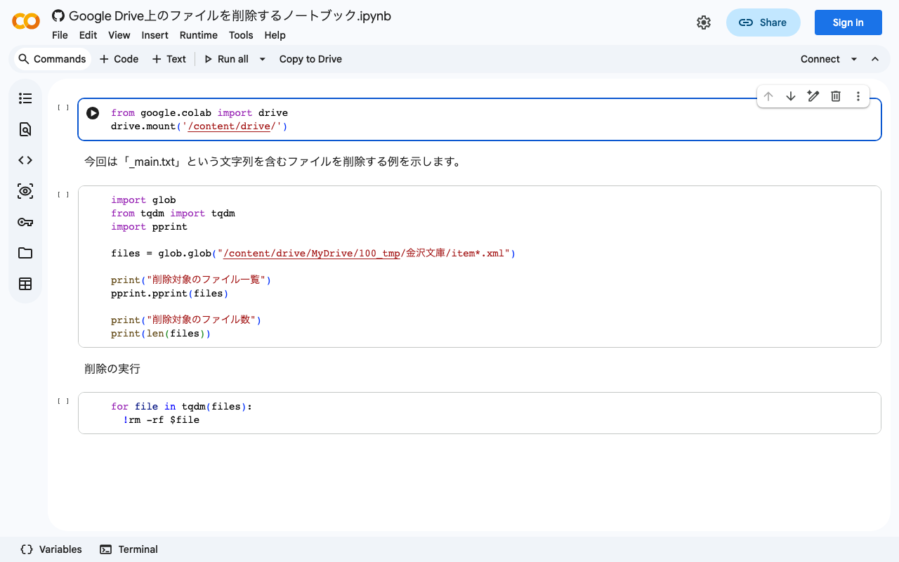 共有ドライブのゴミ箱を空にするスクリプトの実行方法 以下のスクリプトをコピペして利用します。